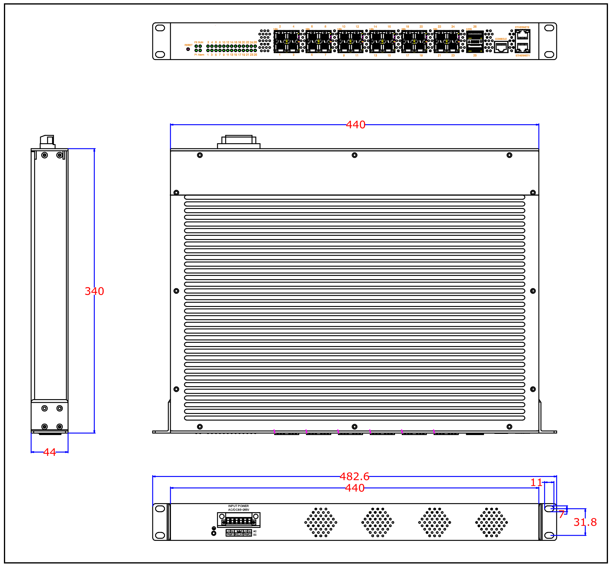 宽×高×深:482.6×44×340mm |