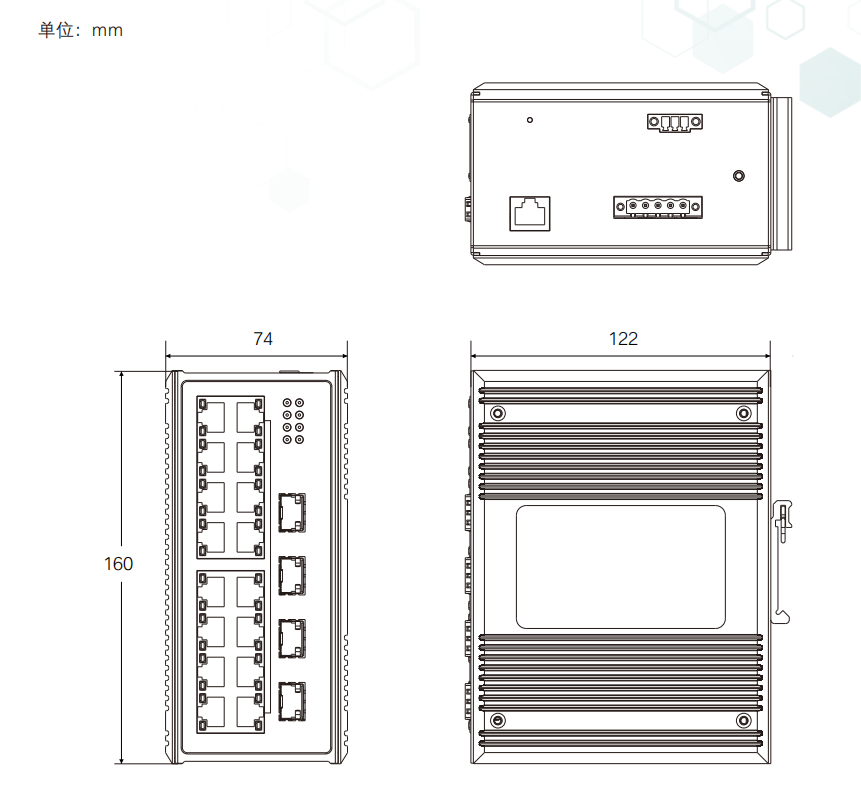 物理尺寸(高×宽×深):160mm×74mm×122mm 安装方式:标准DIN卡轨式 散热形式:铝合金单肋形机箱表面散热,无风机 机壳防护:IP40 |
