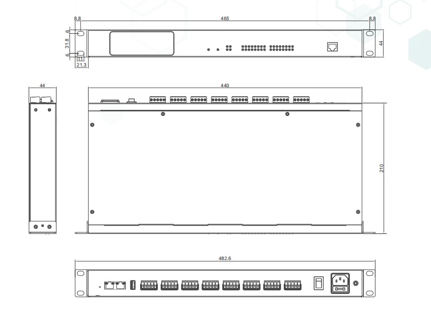 ◆ 以太网接口高达6KV防雷保护; RS232/485接口高达4KV浪涌保护;