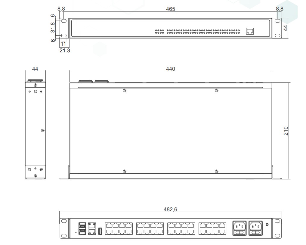 10/100/1000Mbps光电复用口,光口可配置100/1000Mbps |