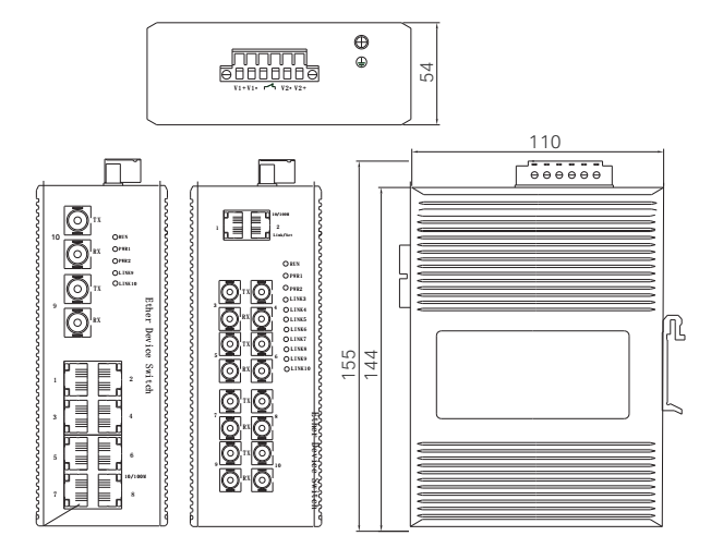 物理尺寸(高×宽×深):144*54* 安装方式:标准DIN卡轨式 散热形式:铝合金单肋形机箱表面散热,无风机 机壳防护:IP40 |
