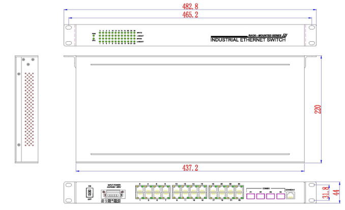 宽×高×深:482.6×44×220mm |
