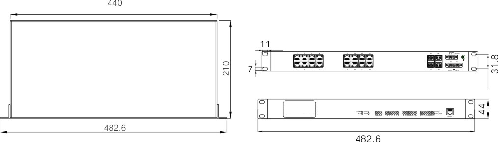 物理尺寸(高×宽×深): 482.6mm×44mm×210mm 安装方式:标准19’ 1U机架式 散热形式:铝合金单肋形机箱表面散热,无风机 出线形式:前后出线 机壳防护:IP40 |