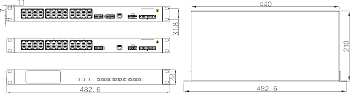 482.6mm×44mm×210mm (W×H×D) |