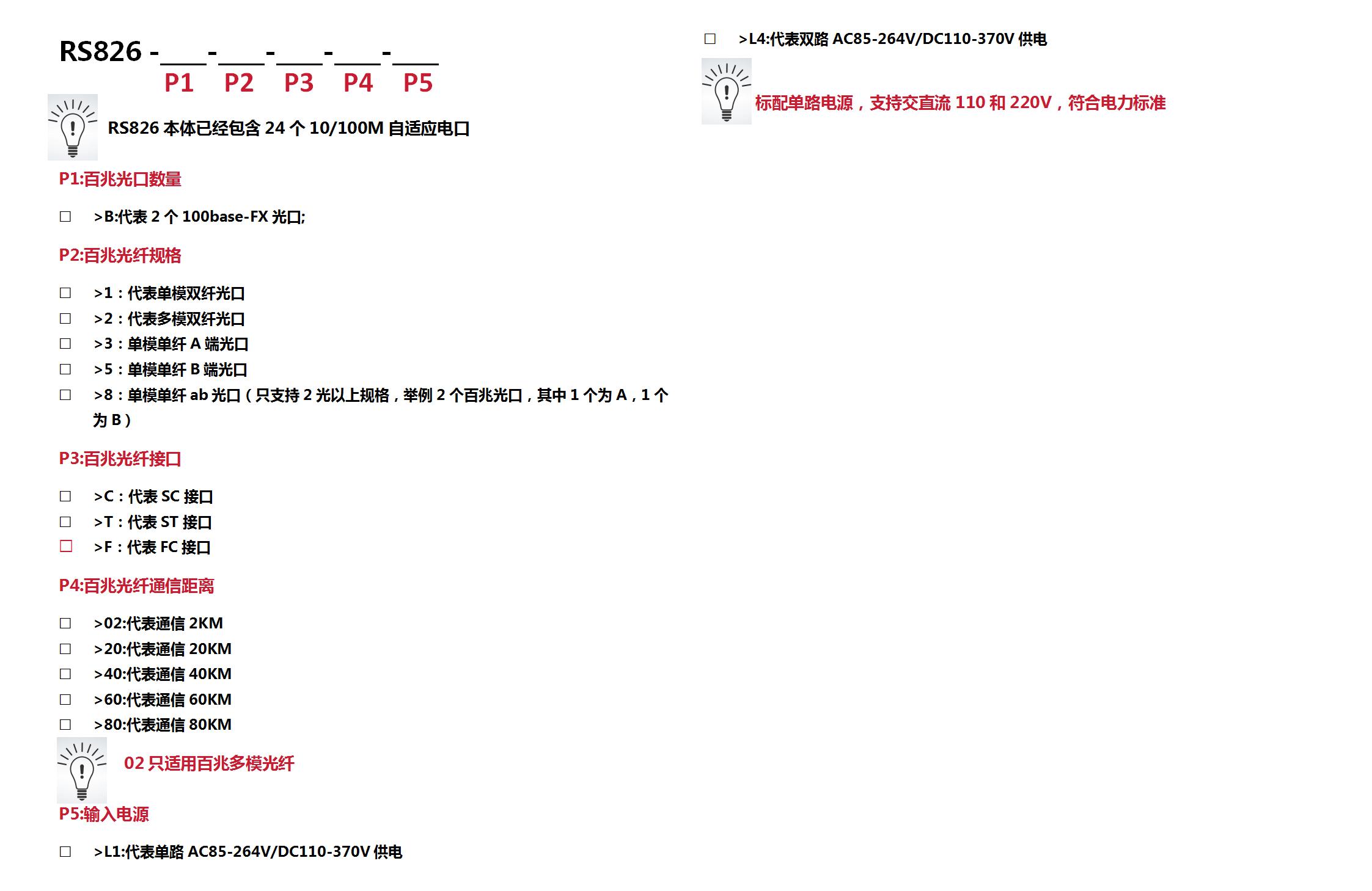 接口形式:1×9固定光口(单/多模可选, SC/FC/ST接口可选)或RJ45百兆电口 |