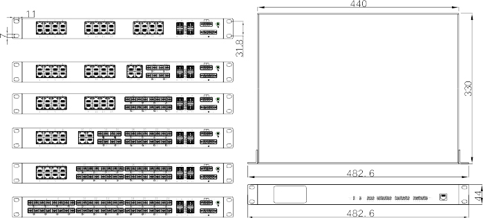 千兆单模:1310nm,20km; 百兆单模:1310nm,20/40km;1550nm,60/80km |
