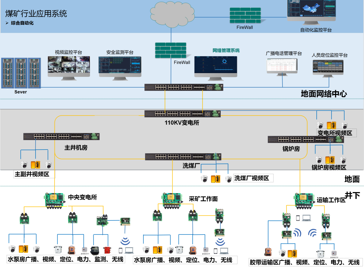 ◆ 通过可靠的光纤万兆环网,实现井下的远程数据监控和与地面系统的实时通讯;