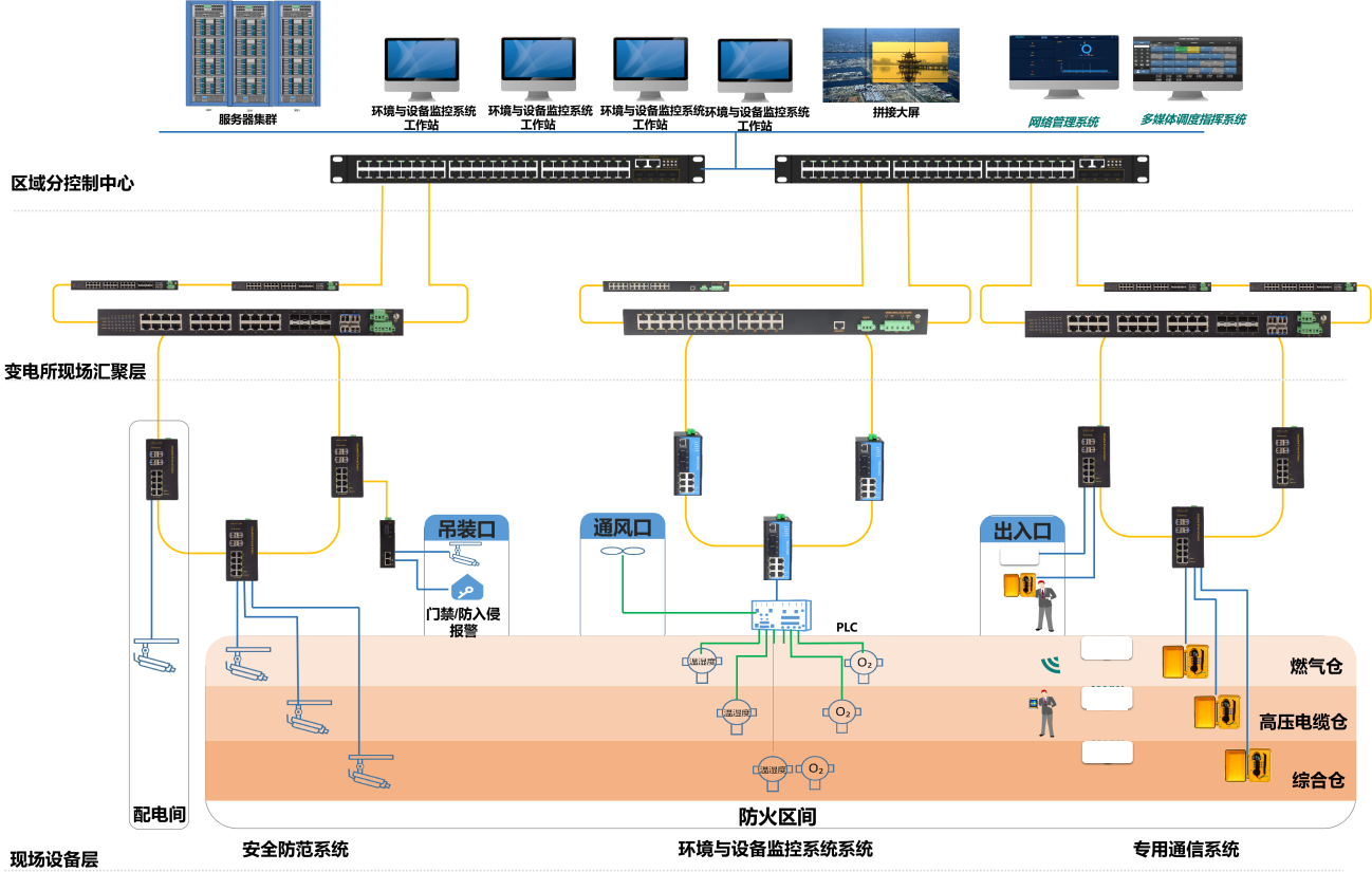 城市综合管廊所处环境属于相对密闭的地下空间,且管廊内的各种管线繁杂、铺设距离长,数据在这样的情况下传输容易丢失,导致很多安全隐患不能及时被发现。因此建设远距离稳定、可靠的传输通道尤其重要,针对城市综合管廊的监控需求,以及管廊内工业环境下的远距离传输不稳定、维护难等特点,推出了专门针对综合管廊行业应用的解决方案,包括视频监控子系统和环境与监控子系统。